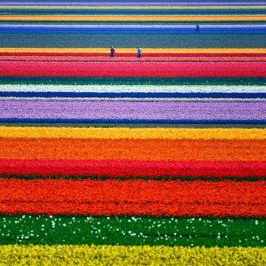 Hoa tulip được trồng thành từng dải, nhìn từ trên cao hết như một bức [...]