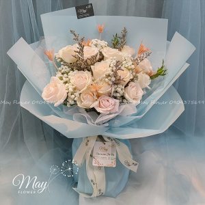 Bó Hoa Ấm Áp – Sự kết hoàn hảo giữa hoa hồng kem dâu cùng với phong cách hàn quốc. Nó tượng trưng cho tình yêu trong sáng, mới chớm nở