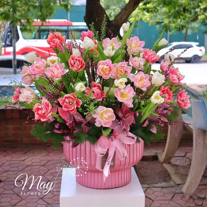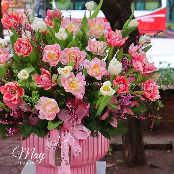 Chạm Vào Yêu Thương – Bình hoa tulip khoe sắc mang lại cảm giác vui vẻ, lạc quan và sức sống cho không gian. Là sự trân trọng và quý mến đối với người nhận.