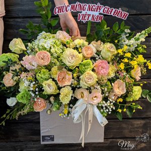 Chạy khỏi thế giới này là lẵng hoa mang những gam màu nhẹ nhàng nhưng đầy sang trọng ; rất thích hợp tặng cho những người phụ nữ lớn tuối mà mình kính trọng.
