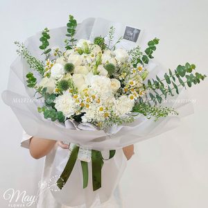 Lưu ý: Đây là sản phẩm hoa tươi tự nhiên nên có thể có chút khác biệt theo các mùa trong năm. Trường hợp không đủ số lượng hoa như mẫu đã chọn, nhân viên tư vấn sẽ liên hệ với Quý khách hàng để lựa chọn mẫu hoa thay thế phù hợp