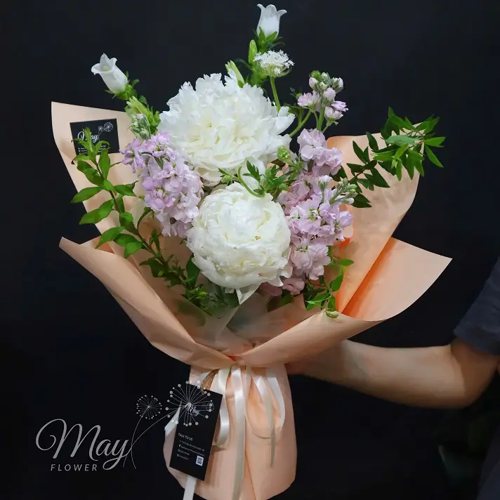 Chút Dịu Dàng – Bó hoa mang một vẻ đẹp cuốn hút, vừa huyền bí, vừa sang trọng. Tone hoa này thể hiện sự lãng mạn, chung thủy, trí tuệ và sự tôn trọng.