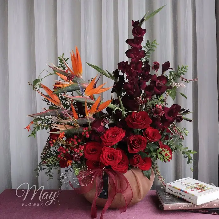 Cơn Mưa Ngang Qua – Bình hoa mang vẻ đẹp kiêu hãnh và mạnh mẽ, tượng trưng cho sự chân thành, tình yêu mãnh liệt và lòng biết ơn sâu sắc.