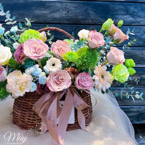 Dịu dàng ngày em đến là giỏ hoa phối màu rất tinh tế , bắt mắt; tạo cảm giác cuốn hút ngay từ ánh nhìn đầu tiên ; giống như ngày đầu tiên em đến vậy!