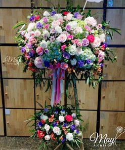 Giàu Sang Và Phú Quý – Kệ hoa khai trương với nhiều loại hoa màu sáng tươi sáng, là đại diện cho tình yêu, hạnh phúc, sự tinh khiết và thành công