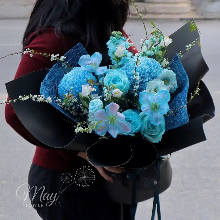 Hẹn Ước Mùa Hoa – Bó hoa với sắc xanh dương tạo nên cảm giác bình yên, tinh tế và có phần mộng mơ mang niềm tin bền vững và cảm xúc trọn vẹn.