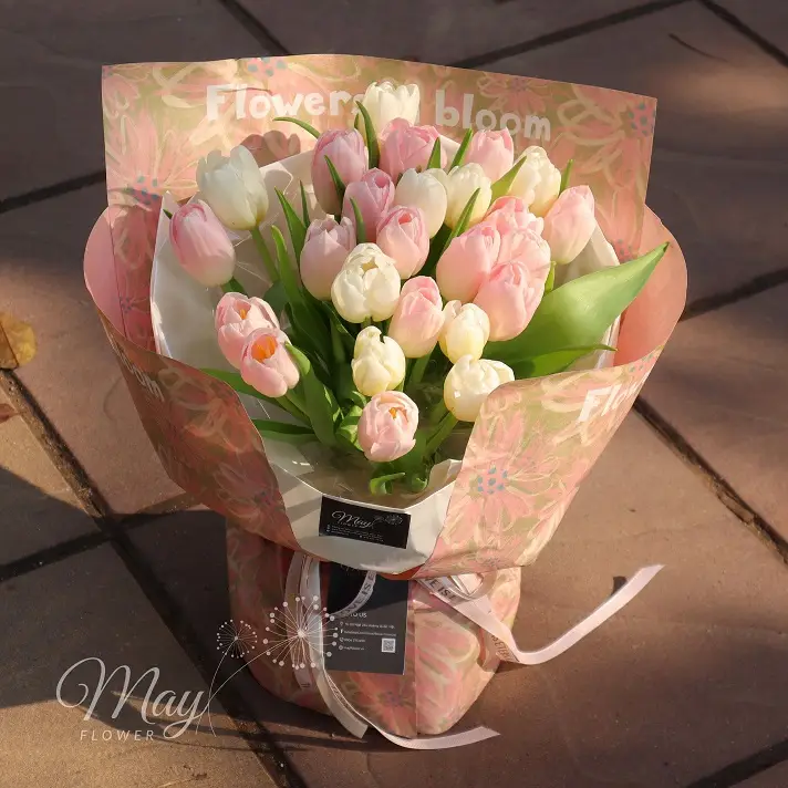Hoa Tinh Sắc Dáng là bó hoa với tulip là chủ đạo thanh thoát, tạo cảm giác kín đáo nhưng đầy cảm xúc, như một lời chúc cho cuộc sống luôn ấm áp, dịu dàng.