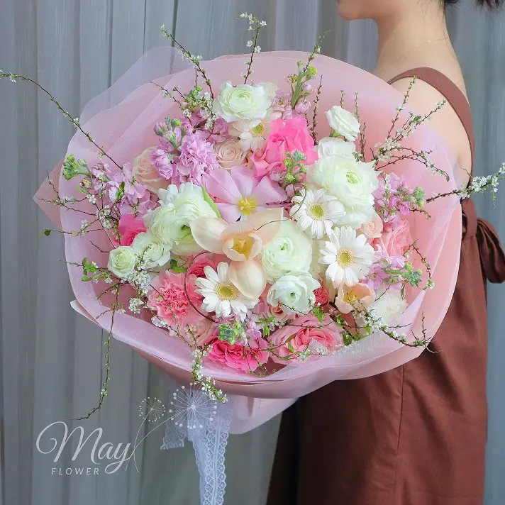 Hồng Của Mộng Mơ – Bó hoa mang vẻ đẹp tươi mới, ngọt ngào thể hiện sự dịu dàng, thủy chung và những cảm xúc tinh tế kéo dài theo thời gian.