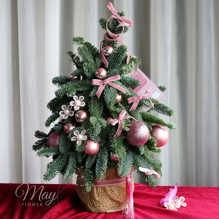 Kết Duyên Mùa Lễ – Cây thông tone hồng mang đến cảm giác nhẹ nhàng, tinh tế và dễ chịu, đặc biệt thích hợp trong các không gian trang trí mùa Giáng Sinh.