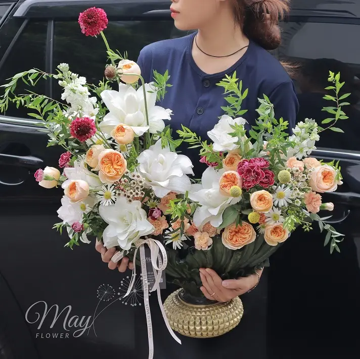 Lưu ý: Đây là sản phẩm hoa tươi tự nhiên nên có thể có chút khác biệt theo các mùa trong năm. Trường hợp không đủ số lượng hoa như mẫu đã chọn, nhân viên tư vấn sẽ liên hệ với Quý khách hàng để lựa chọn mẫu hoa thay thế phù hợp