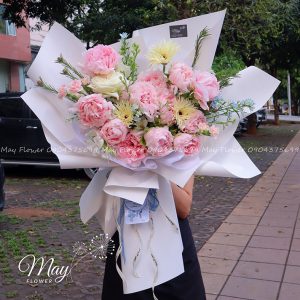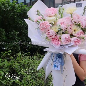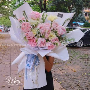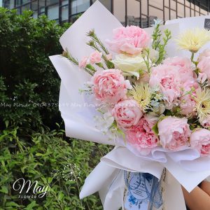 Lần Đầu Biết Yêu – Bó hoa Peony nhập kết hợp với hoa tone trắng, một bó hoa biểu tượng của sự cao quý, thanh lãnh và dịu dàng.