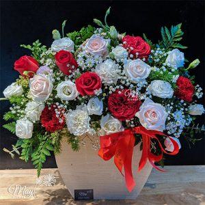 Lẵng hoa gắn kết là lẵng hoa rực rỡ sắc đỏ của những bông hồng đỏ ; mang thông điệp như một lời an ủi đầy chân thành.