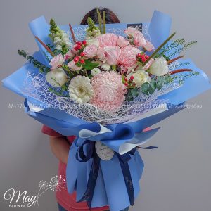 Lời nói gió bay là bó hoa tone trắng hồng nhẹ nhàng nhưng toát lên vẻ nhã nhặn , thanh tao; rất phù hợp làm quà tặng những người phụ nữ thân yêu trong.