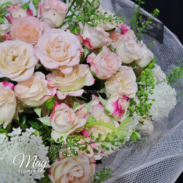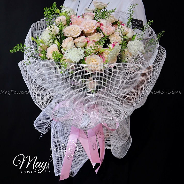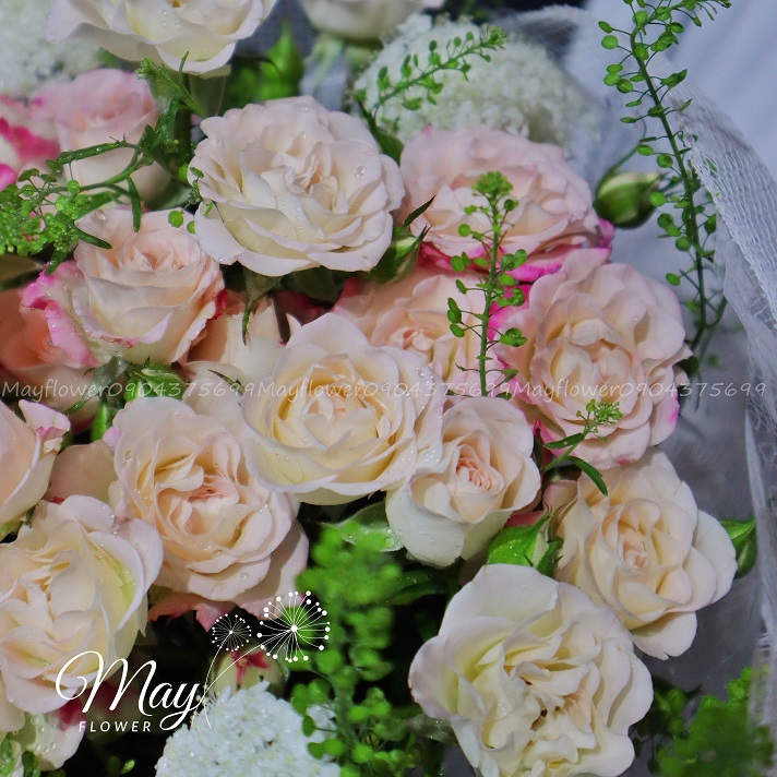 Mưa rơi là bó hoa hồng chùm chiết xạ nhẹ nhàng với sự kết hợp hài hòa giữa các bông hoa hồng ấn tượng tại shop hoa tươi Mayflower