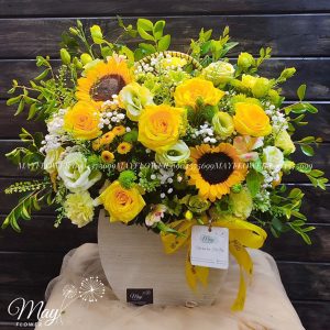 Need to kow là lẵng hoa rực rỡ sắc vàng; màu của những tia nắng , màu của sự tươi sáng và mang đến những nguồn năng lượng tích cực.