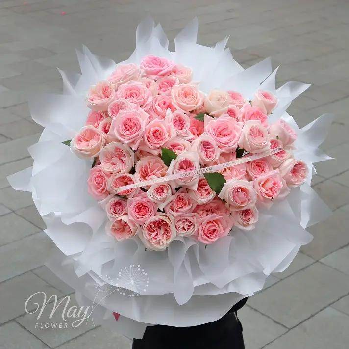 Ngọt Ngào Yêu Thương – Bó hoa hồng Ohara mang vẻ đẹp kiêu kỳ nhưng dịu dàng, như một nàng tiểu thư cổ điển khoác lên mình lớp váy hồng phấn mềm mại