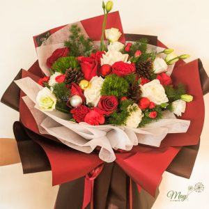 Noel hạnh phúc là bó hoa tone đỏ ấm áp; là món quà tuyệt vời để dành tặng người thân, bạn bè dịp lễ noel .