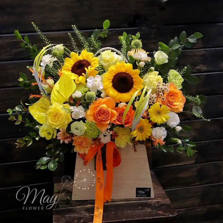 Phúc Hoa – Lẵng hoa với tone màu rực rỡ biểu trưng cho sự đam mê, phấn khởi, hạnh phúc, sáng tạo, quyết đoán, thành công.