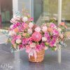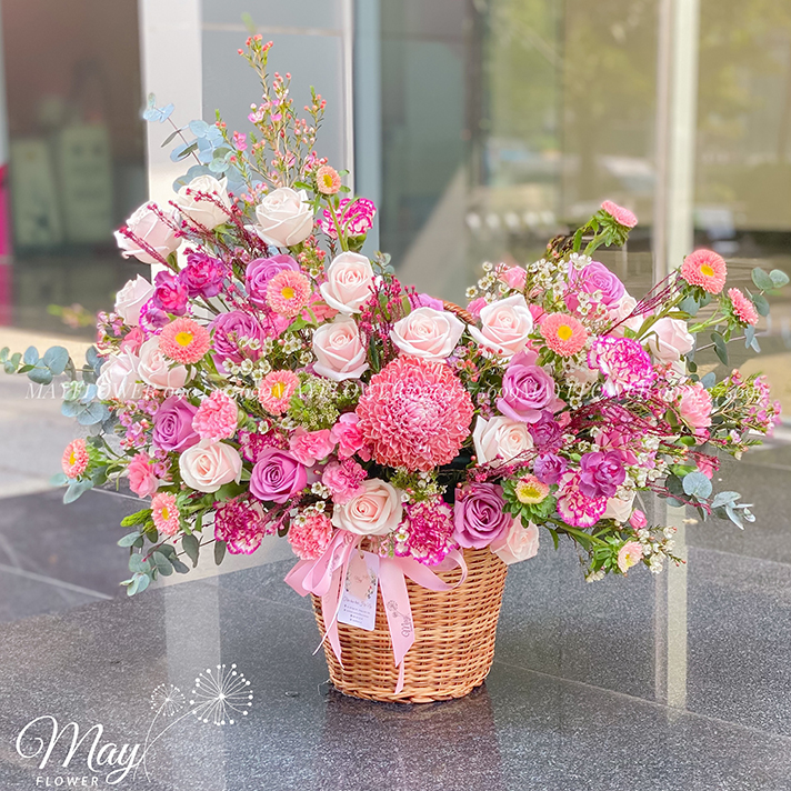 Sắc Hồng Tình Yêu – Giỏ hoa tone hồng tím đại diện cho lòng chung thủy, tình yêu mãi trường tồn và là biểu tượng cho niềm vui, hạnh phúc.