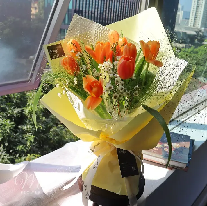 Sắc Màu Xinh là bó hoa mang đến cảm giác ấm áp, thân thiện, tinh tế và đầy hy vọng với sắc cam vừa nổi bật, vừa dịu dàng.