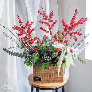 Hộp đào đông đỏ Sum vầy – hoa đỏ cho năm mới trọn vẹn. Bình hoa mang lại niềm vui và sức sống đầu xuân ;mỗi bông hoa nhỏ là một điều may mắn cho gia chủ.