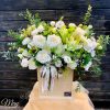 Lẵng hoa trắng tinh khôi tượng trưng cho sự thanh khiết, thủy chung và chờ đợi. Giống như một tình yêu vô cùng tinh khiết, lãng mạn và tràn ngập hạnh phúc.