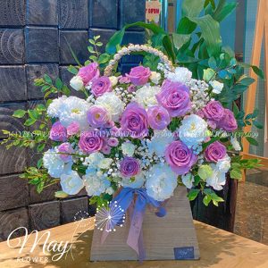 Lẵng hoa tươi vùng trời tím biếc, chủ đạo là những cánh hoa tươi màu tím, đó là một tình yêu thủy chung sâu sắc, tinh khôi, chung thành.