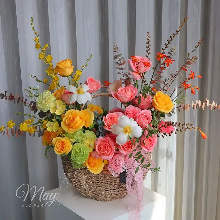 Vườn Hồng – Giỏ hoa tone màu tươi tắn, vui vẻ nhưng lại mang đến cho chúng ta một cảm giác bình yên, một hạnh phúc giản dị và bền lâu.