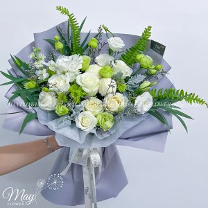 Vượt rào thời gian là bó hoa tone trắng xanh tươi mát, tinh khôi; được ví như là hình ảnh của một cô gái nhẹ nhàng, thuần khiết và đầy tinh tế.