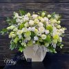 Xanh Trong – Lẵng hoa kết hợp xanh trắng như nói đến sự vươn lên mạnh mẽ, thể hiện cho sự tươi mới, sức sống và sự hòa hợp với thiên nhiên.