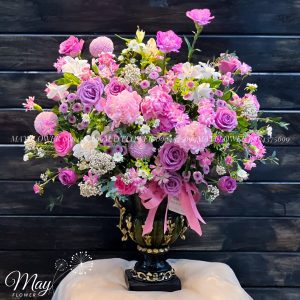 Bình giả cổ Yêu Thương Trong Tầm Tay – bình hoa tone hồng tím tượng trưng cho sự quyến rũ, ân sủng, sự sang trọng, tôn trọng tuyệt đối.
